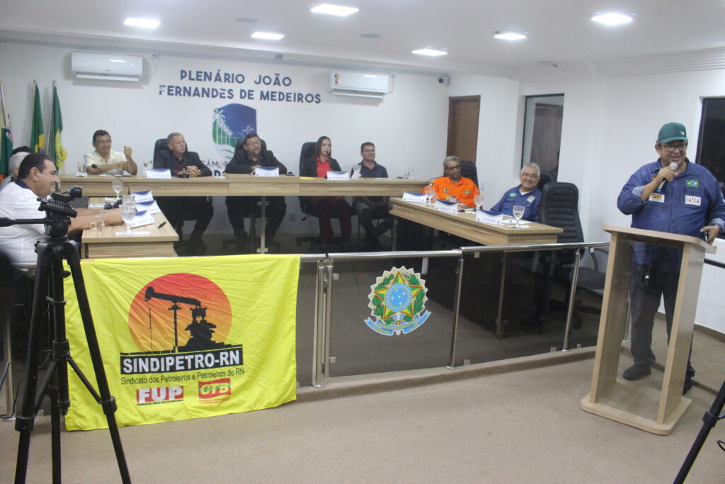 Com o auditório lotado, os presentes tiveram a oportunidade de ouvir da Diretoria do SINDIPETRO-RN, Prefeitura do Alto do Rodrigues e Prefeitura de Carnaubais o relato das consequências após a venda de ativos da Petrobrás na região. O Coordenador Geral do sindicato, Marcos Brasil, apresentou como sugestão três pautas de intervenção para ajudar na retomada dos investimentos da Petrobrás no RN.