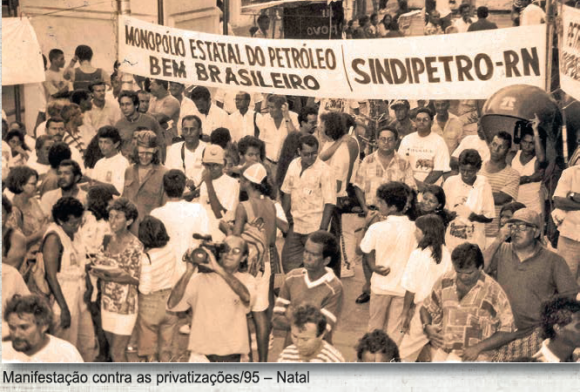 Três de junho de 1995. Nesta data, petroleiros e petroleiras do Brasil encerravam a mais longa greve da história da categoria, que agora completa 20 anos. Por cerca de 30 dias, a categoria resistiu à truculência do governo neoliberal de Fernando Henrique Cardoso, que teve como aliados a “grande” mídia e segmentos empresariais. A conjuntura era marcada pelo arrocho salarial, privatização e desnacionalização do patrimônio público, além das restrições à democracia. Entre outras, essa reportagem integra a revista lançada em comemoração aos 30 anos de existência do SINDIPETRO-RN. Confira: