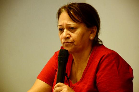 Coordenadora da Frente Parlamentar Mista em Defesa da Petrobrás, com responsabilidade pela articulação política nos Estados da Região Nordeste, a senadora Fátima Bezerra defendeu, junto aos petroleiros, a opinião de que a apuração dos casos de corrupção na Companhia tem sido instrumentalizada pela mídia e pela oposição ao Governo Dilma para favorecer uma campanha de ataques ao modelo de partilha e à própria estatal. Por isso, falando à plenária do Congresso, a parlamentar disse “estranhar profundamente” as recentes declarações do ministro das Minas e Energia, Eduardo Braga, externadas em evento realizado nos Estados Unidos, que chegou a defender a abertura do debate em torno da necessidade de flexibilização daquele regime.