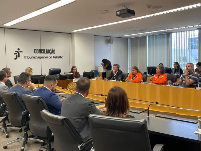 Após aprovação nas assembleias da proposta de quitação da PLR 2019, mediada pelo TST, o acordo foi homologado nesta segunda-feira, 23, em Brasília, na sede do Tribunal. Participaram da homologação o Ministro do TST, Caputo Bastos, as diretoras da FUP, Cibele Vieira e Bárbara Bezerra, representantes da Petrobrás e as assessorias jurídicas.