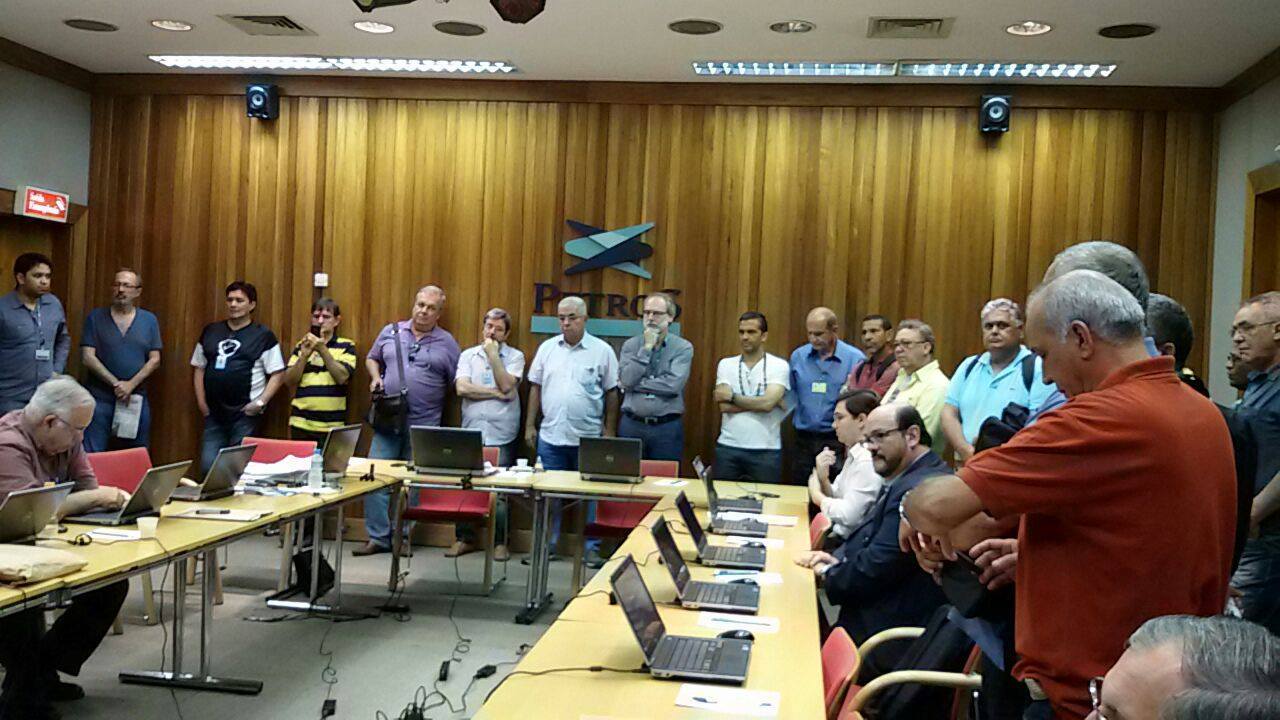 Os petroleiros entraram na sala de reunião e exigiram que o Conselho aprove o acordo, nesta sexta, independentemente de parecer externo, e que apresente um calendário para pagamento dos níveis devidos aos aposentados e pensionistas.