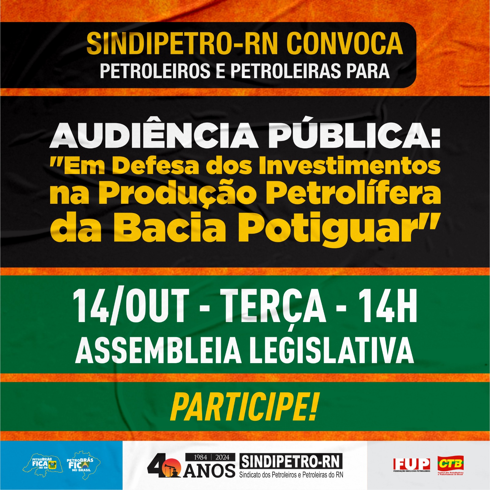 Proposta pela deputada estadual Isolda Dantas (PT), a atividade é resultado de um intenso esforço de articulação conduzido pelo SINDIPETRO-RN, que busca apoio ao Manifesto em Defesa de Investimentos na Bacia Potiguar. Aprovado no 40º Congresso Estadual dos Petroleiros e Petroleiras do Rio Grande do Norte (CEPETRO-RN), o documento vem sendo apresentado a líderes de diversos segmentos políticos, sociais e empresariais, com o objetivo de unir a sociedade norte-rio-grandense em torno do pleito.