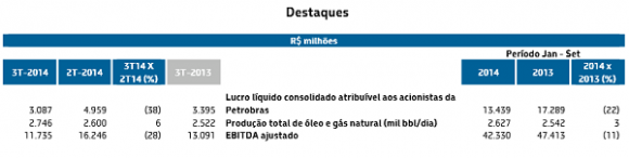 A Petrobras divulgou, na madrugada de hoje (28), as demonstrações contábeis do terceiro trimestre de 2014, que mostram um lucro líquido de R$ 3,084 bilhões.