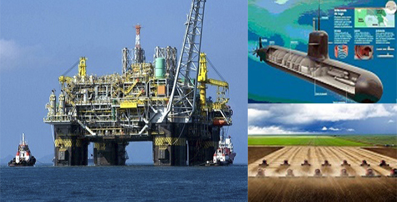 Aspirante a potência, o Brasil, há muitos anos um gigante agrícola, vinha trilhando um caminho alternativo na era Lula-Dilma. Com as descobertas do pré-sal, o País trocou o modelo de concessão pelo de partilha, uma vez que o risco exploratório já havia sido mitigado pelas pesquisas da Petrobras em águas profundas. No campo militar, a renovação dos caças da Força Aérea e o projeto do submarino nuclear ajudariam a patrulhar as reservas nacionais de óleo e gás. Além disso, outra conquista importante foi a expansão das fronteiras marítimas do País, com a chamada “Amazônia azul”.
