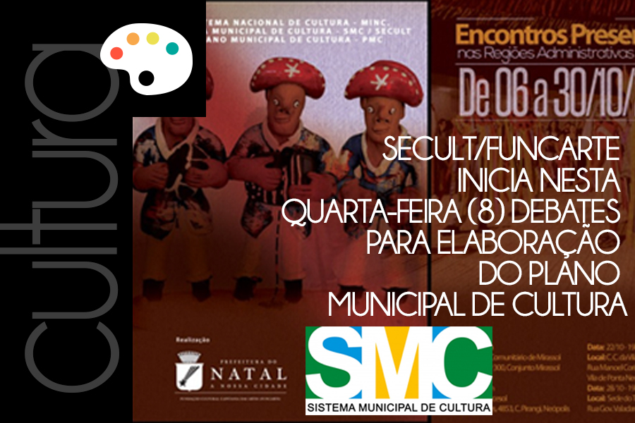 A Prefeitura do Natal, através da Secretaria Municipal de Cultura e Funcarte, inicia nesta quarta-feira (dia 8), os debates e recebimento de propostas para a elaboração do Plano Municipal de Cultura. Todas as regiões administrativas da cidade estarão recebendo reuniões semanais (veja quadro) para que o Plano seja articulado e elaborado.