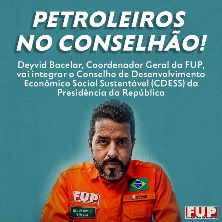 O coordenador-geral da Federação Única dos Petroleiros (FUP), Deyvid Bacelar, vai integrar o Conselho de Desenvolvimento Econômico Social Sustentável (CDESS) da Presidência da República. O convite foi feito pelo presidente Lula e pelo ministro das Relações Institucionais, Alexandre Padilha.