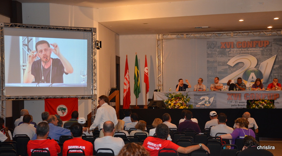 Redução nos lucros da companhia; defasagem nos preços dos combustíveis no Brasil, em relação àqueles praticados no mercado internacional; e os ataques desfechados pela mídia contra a Petrobrás. Esses foram os principais pontos abordados pelo economista Cloviomar Cararine, técnico da subseção Dieese-FUP, durante a mesa temática: “Complexa Conjuntura no Brasil e na Petrobrás – Impactos, estratégias e perspectivas”. A atividade foi realizada no início da tarde dessa sexta-feira, 15, como parte integrante da programação do XVI Congresso Nacional da Federação Única dos Petroleiros – CONFUP, que acontece em Natal, no período de 14 a 17 de agosto.