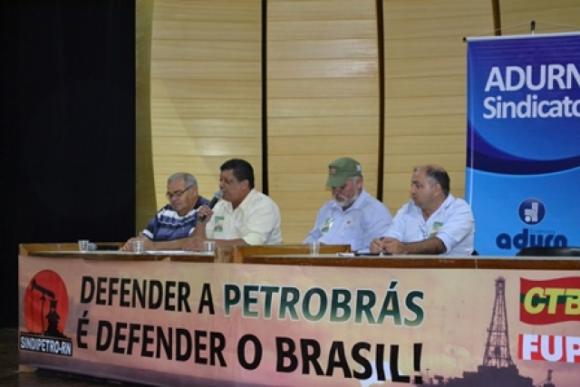 O evento, que teve por objetivo discutir “A importância da Petrobrás para o desenvolvimento nacional”, numa conjuntura marcada pelas incertezas decorrentes dos possíveis desdobramentos da “Operação Lava Jato”, também contou com a participação de um representante da Federação Única dos Petroleiros – FUP. A atividade foi promovida pelo SINDIPETRO-RN, em conjunto com o ADURN-Sindicato, Central Única dos Trabalhadores – CUT e Central dos Trabalhadores e Trabalhadoras do Brasil – CTB.