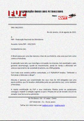 Veja, aqui, a Carta Aberta encaminhada pelo SINDIPETRO-RN, e, aqui, a Carta da FUP dirigida à FNP.