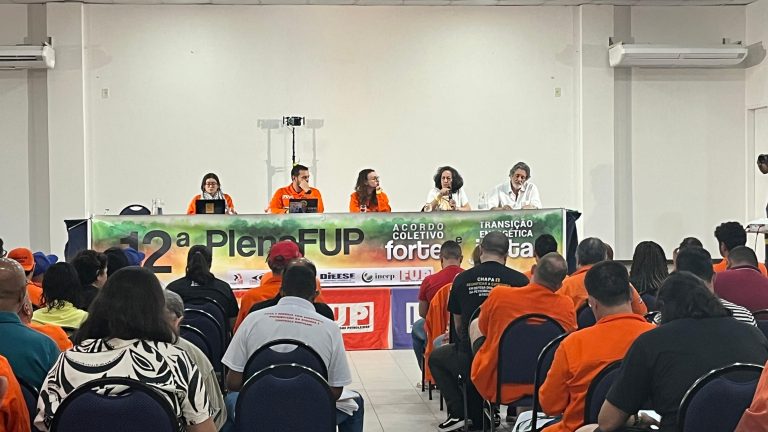 Os debates da 12ª Plenária Nacional da FUP ficaram ainda mais intensos nesta terça-feira (05), segundo dia do evento, com a realização da mesa temática que abordou os temas de geopolítica internacional e transição energética.