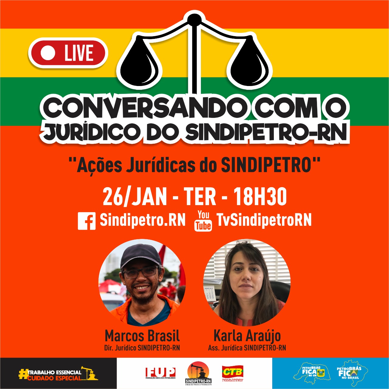 A live tem como objetivo informar a categoria petroleira potiguar sobre os processos jurídicos movidos pelo Sindicato, além de tirar dúvidas sobre direitos trabalhistas. Participe e mande suas perguntas!