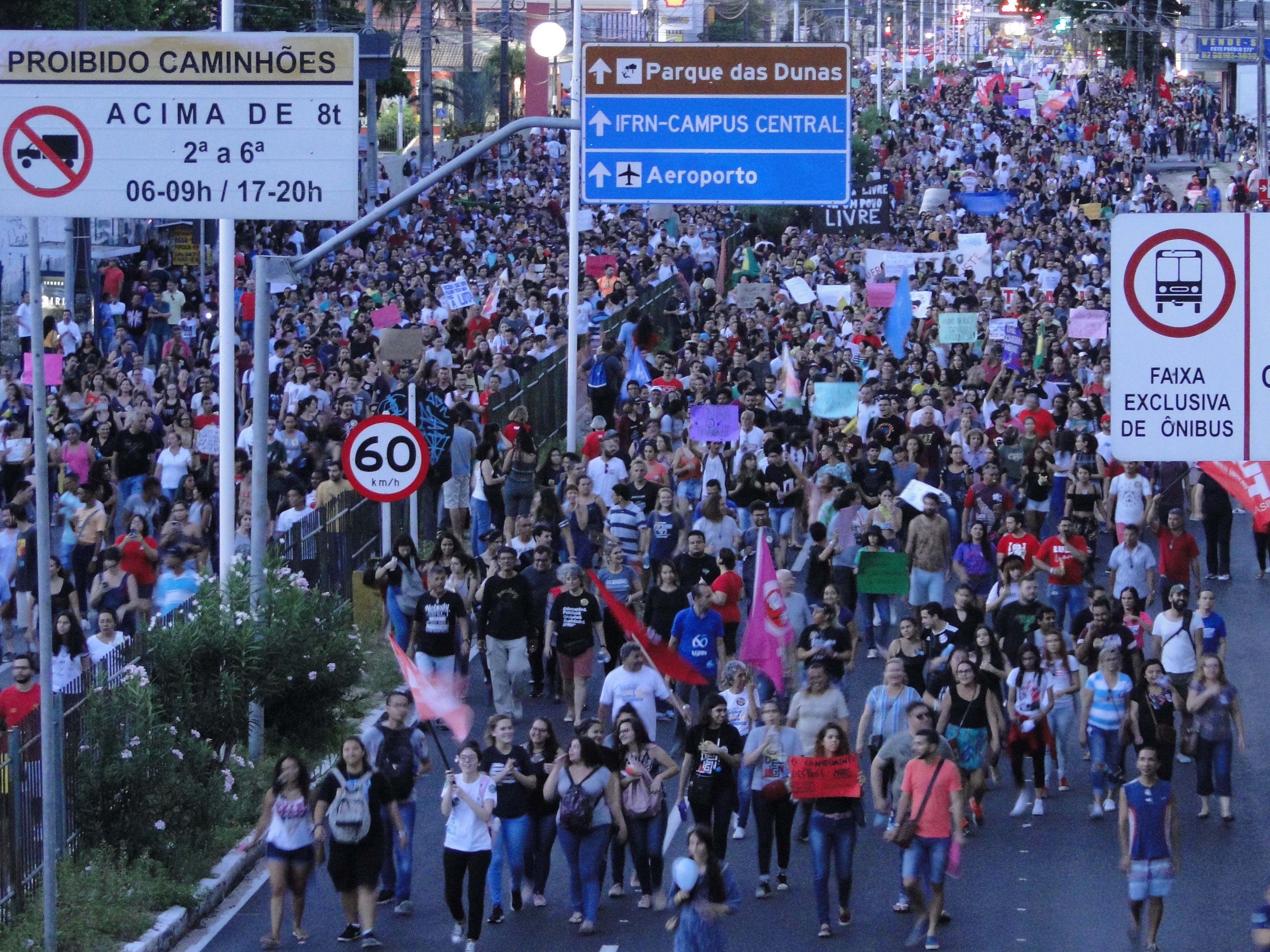 Em dia histórico, mais de 80 mil protagonizam Greve Nacional da Educação no maior ato de rua da capital potiguar desde a eleição de Jair Bolsonaro (PSL) e fizeram ecoar a disposição em barrar a agenda de desmonte das políticas educacionais. Movimentação de dimensão nunca vista tomou as ruas de Natal nesta quarta-feira (15) numa demonstração de apoio da população e unidade do sindicalismo e dos movimentos sociais, Frente Brasil Popular e Frente Povo sem Medo, junto a setores significativos da Educação e outros segmentos.