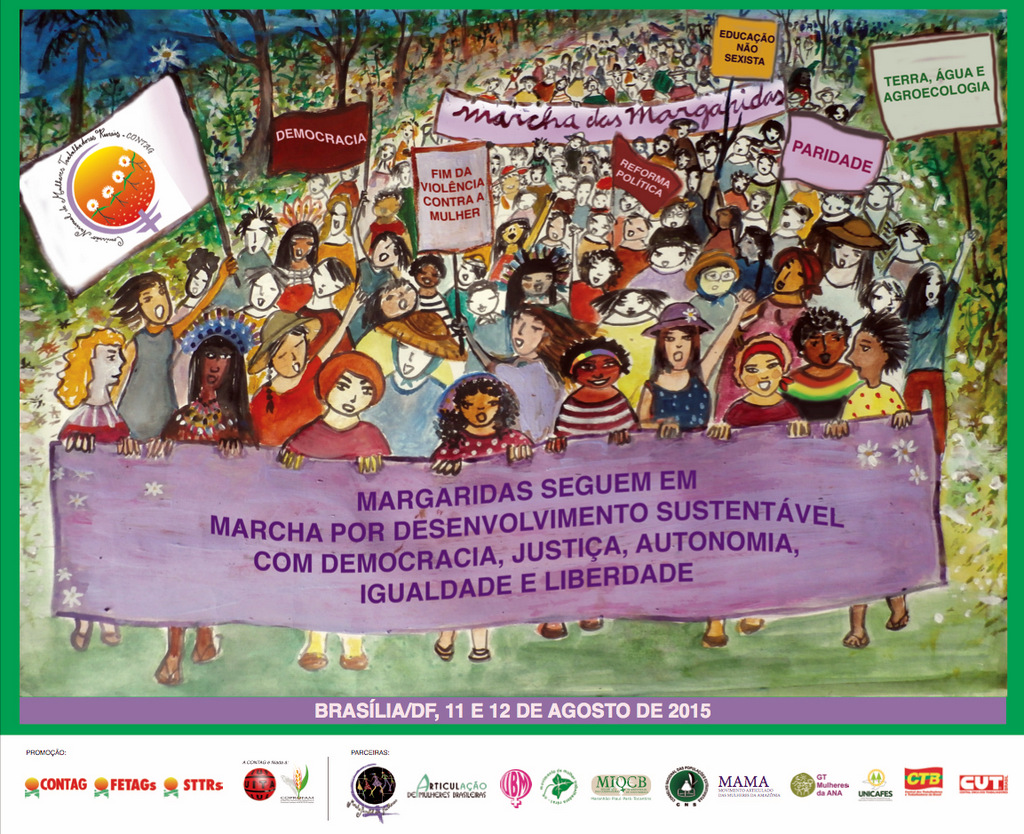 Em 2015, nós Margaridas de todos os cantos do país, vamos ocupar nossos municípios, capitais, e Brasília, acreditando que é possível construir um Brasil soberano, sustentável, mais democrático, justo e igualitário na cidade e no campo.