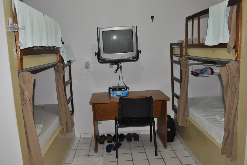 Paliativos – As medidas que vêm sendo tomadas pelos responsáveis têm caráter paliativo e rebaixam a ambiência. No alojamento novo, estão acrescentando uma cama em apartamentos que foram projetados para duas pessoas, e as áreas utilizadas para armários estão sendo “adaptadas” para apartamentos femininos. Já, no alojamento antigo, o compromisso de reforma das instalações ficou para o Dia de São Nunca.