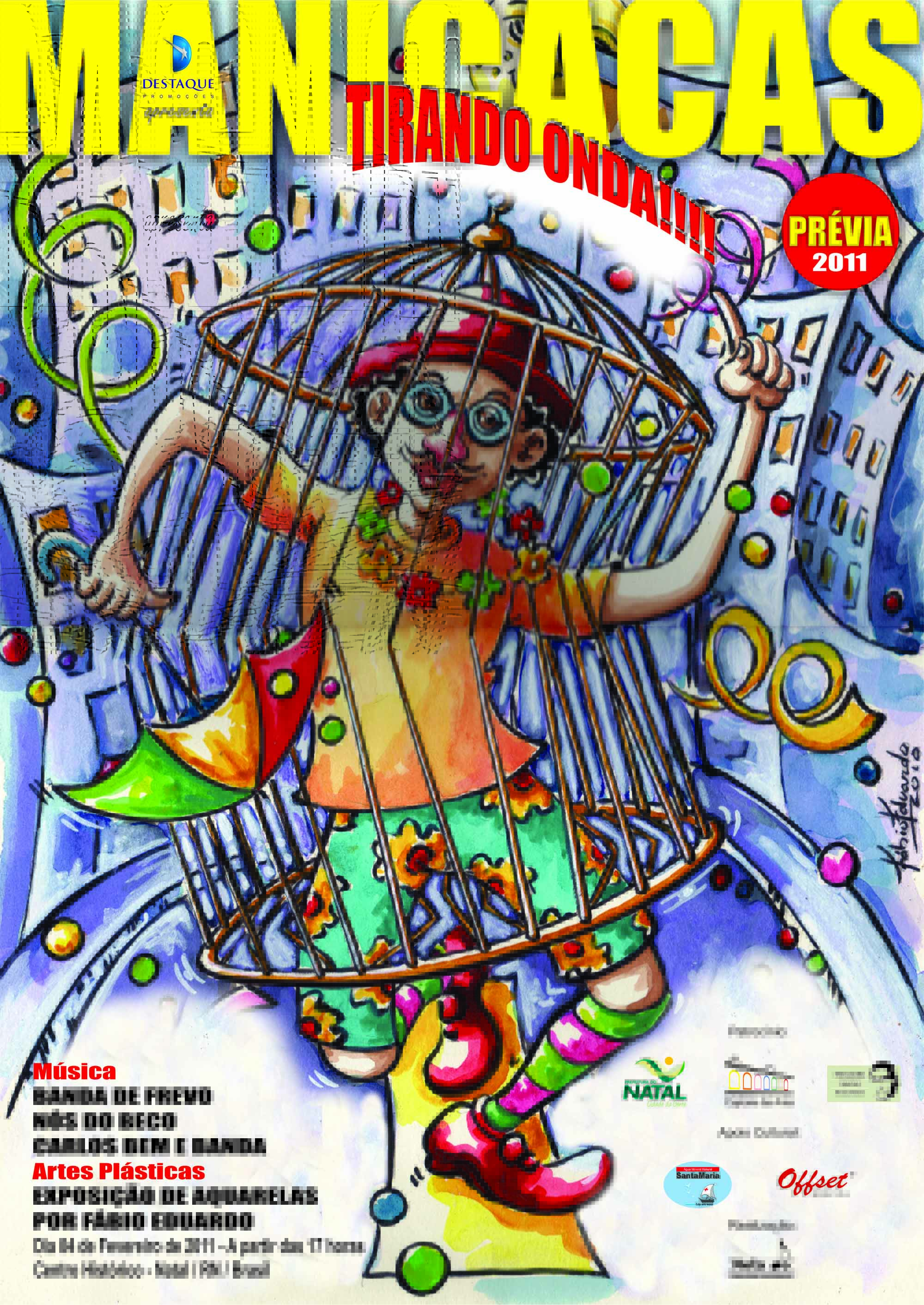 O bloco natalense “Manicacas no Frevo” abre a temporada de prévias carnavalescas nesta sexta-feira, 4 de fevereiro, a partir das 18 horas. A Troça percorrerá ruas do Centro Histórico de Natal, saindo do Bardallos, na Gonçalves Ledo, com destino ao Bar do Nélio. Na chegada, a folia prossegue com a apresentação de frevos, por Carlos Bem, e de marchas carnavalescas, com o Grupo “Nós do Beco”. A justificativa para o auê antecipado do “Manicacas” já está na ponta da língua dos organizadores: o lançamento da camiseta da agremiação, desenhada pelo artista plástico Fábio Eduardo. Segundo eles – e com toda a razão, o fato é imensamente mais importante que a SPFW. Reservas pelo fone: 9416.8016.