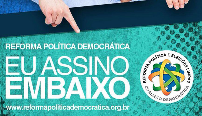 O projeto de reforma política precisa alcançar 1,5 milhão de assinaturas. Entre as propostas, está o fim do financiamento de empresas a campanhas eleitorais, a votação em duas etapas – partido e candidato – para cargos do legislativo, a paridade de gênero entre candidatos e o fortalecimento de mecanismos de democracia direta.