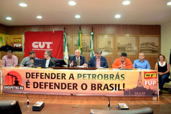 Em Audiência Pública realizada na Câmara Municipal de Natal, na manhã desta terça-feira, 5, a Direção da Petrobrás foi duramente criticada pela decisão de ceder direitos de exploração de campos de petróleo e de alienar ativos no Rio Grande do Norte e em outros Estados. Na avaliação dos participantes, caso essa disposição seja concretizada, a economia potiguar sofrerá forte impacto, com graves consequências no âmbito social. Promovida pela Frente Parlamentar Municipal em Defesa do Trabalho, presidida pelo vereador George Câmara, a sessão contou com participação de representações do Governo do Estado, SINDIPETRO-RN, AEPET-NS, AGERN, CUT e CTB, entre outras entidades e instituições.