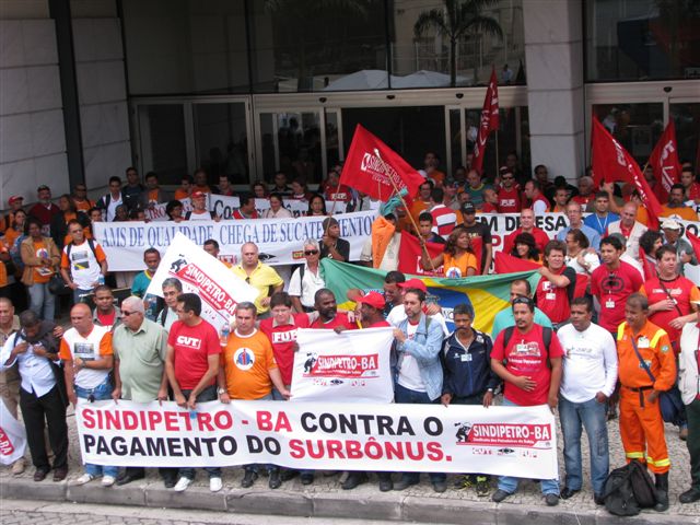 Aproximadamente 500 trabalhadores participaram, nesta quarta-feira, 10, de mais uma mobilização convocada pelo Conselho Deliberativo da FUP para pressionar o governo e a direção da Petrobrás a atender as principais reivindicações da categoria, não só em relação à PLR, mas também no que diz respeito às condições de trabalho e segurança.