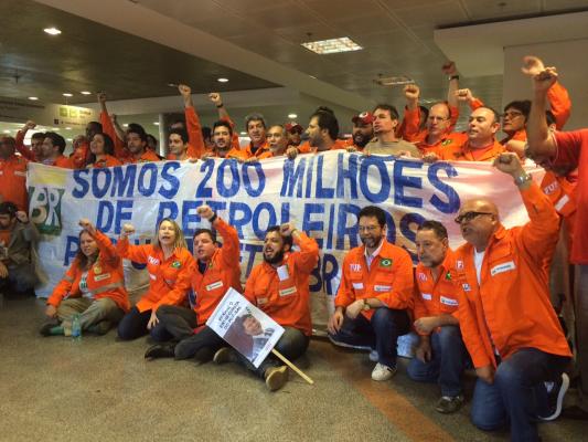 “Ô senador, não entrega não. Quero o pré-sal pra saúde e educação”, repetiam os petroleiros cada vez que um parlamentar passava pelo portão de desembarque do aeroporto de Brasília. “Não, não, não à privatização”, emendavam os trabalhadores, contagiando as pessoas que circulavam pelo saguão e se solidarizavam com a causa da categoria.