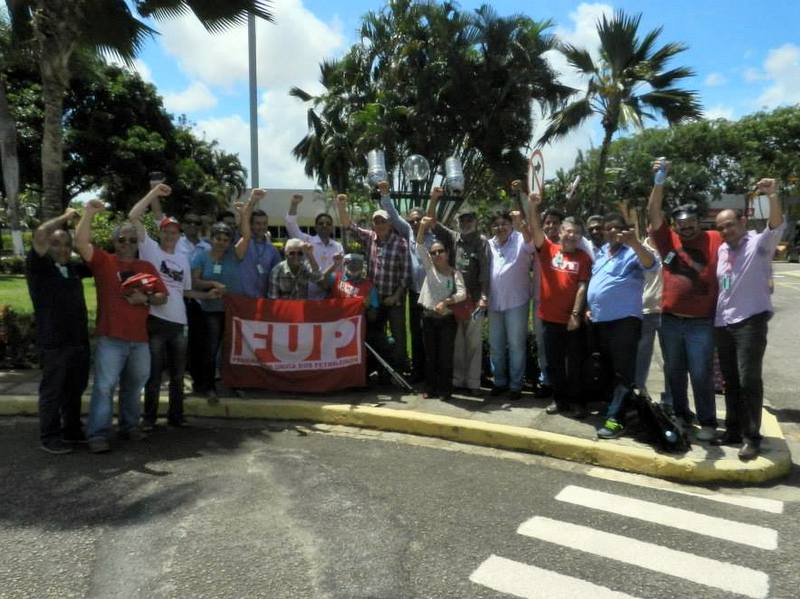 Em ato público realizado na manhã desta quinta-feira, 28, trabalhadores lotados na sede administrativa da Petrobrás, em Natal, repudiaram a realização da 12ª Rodada de Licitações promovida pela Agência Nacional de Petróleo – ANP. A manifestação contou com a participação de dirigentes da CTB, FUP, FNP e de sindicatos de petroleiros de Pernambuco/Paraíba, Bahia, Norte-fluminense e Paraná/Santa Catarina. O representante dos trabalhadores no Conselho de Administração da Petrobrás, José Maria Rangel, também esteve presente. No certame, agendado para hoje e amanhã (29), a ANP pretende leiloar, sob o regime de Contrato de Concessão, um total de 240 blocos com potencial para gás natural, distribuídos por sete bacias sedimentares.