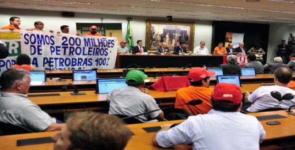 Trabalhadores, estudantes e movimentos sociais compareceram em peso à Câmara dos Deputados Federais no último dia 24 para o relançamento da Frente Parlamentar Mista em Defesa da Petrobrás, que conta com a participação de 210 deputados federais e 42 senadores. “A presença dos petroleiros e movimentos sociais hoje aqui nesta Casa encoraja e fortalece a nossa ação parlamentar em defesa do patrimônio nacional”, destacou a deputada federal Maria do Rosário (PT/RS), se referindo às caravanas de petroleiros de vários estados do país que ocuparam um dos plenários da Câmara com seus uniformes laranja e faixas em defesa da Petrobrás.