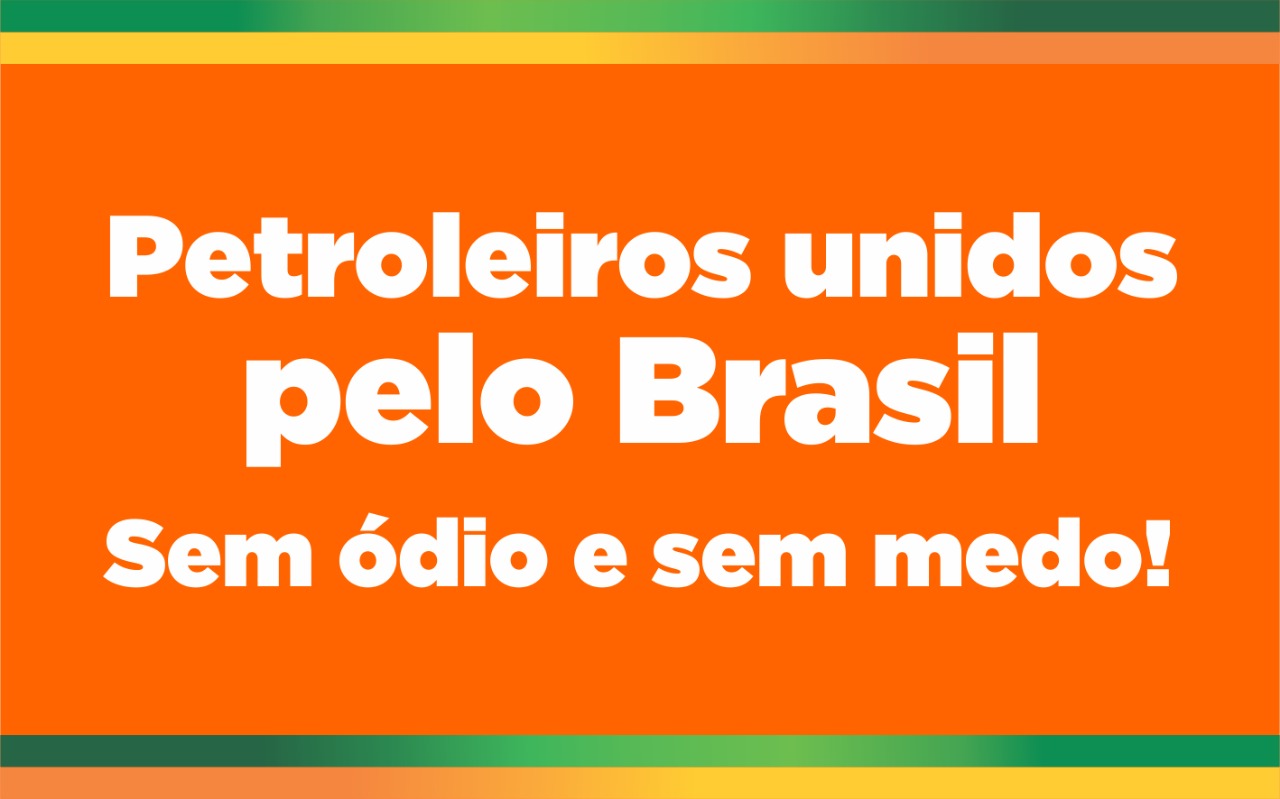 Sem ÓDIO e sem MEDO, repudiamos a candidatura fascista de Jair Bolsonaro, e conclamamos todos os trabalhadores e trabalhadoras integrantes dos diversos segmentos da cadeia produtiva do petróleo a se unirem em torno dos que defendem a Democracia, a Soberania Nacional e os Direitos do Povo, votando em Fernando Haddad (13) para a Presidência da República.