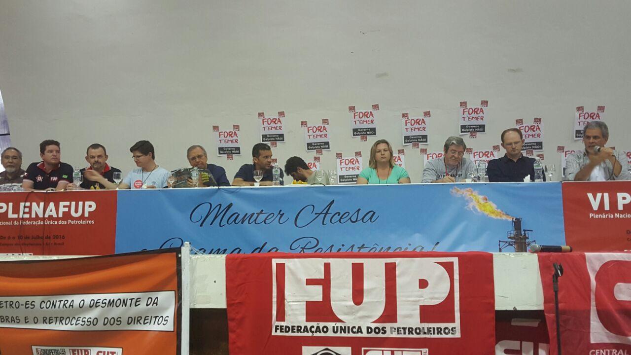 Painel de debate na manhã de hoje na VI Plenafup mostrou o modo como o setor petróleo é utilizado no jogo global do capitalismo. De diferentes maneiras, os expositores defenderam uma atuação mais internacional dos trabalhadores para disputar as riquezas produzidas pelo petróleo para promover a inclusão social, e não apenas no Brasil. Participaram dos debates o professor e pesquisador do IFF (Instituto Federal Fluminense), Roberto Moraes, o diretor do MAB (Movimento dos Atingidos por Petróleo), Gilberto Cervinski, e o diretor do Clube de Engenharia, Pedro Celestino.