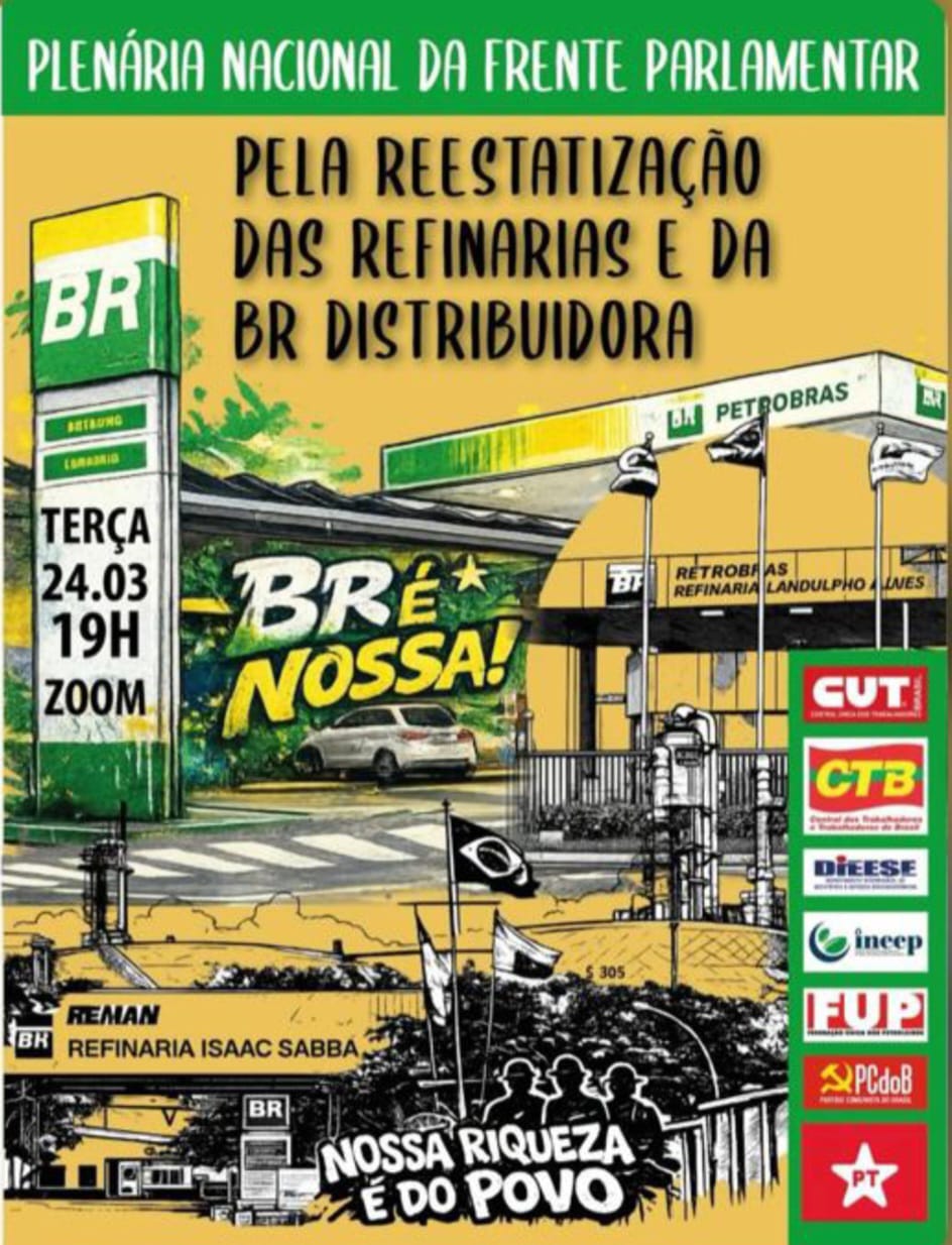 Acontece nesta terça-feira (24/03), às 19h, uma plenária nacional da frente parlamentar em defesa da reestatização das refinarias e da BR Distribuidora, com participação aberta via Zoom.