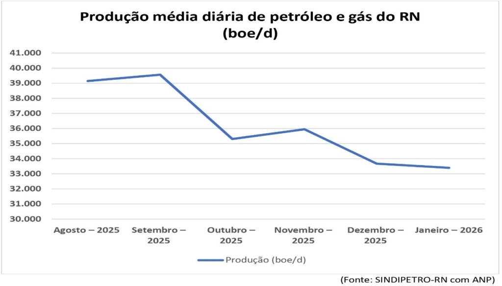 No entanto, segundo dados divulgados pela própria companhia no início de março de 2026, referentes ao mês de fevereiro, a produção local da Brava na Bacia Potiguar deverá registrar nova queda, com redução de aproximadamente 1.100 boe/d, o equivalente a -5,45% em relação aos volumes produzidos em janeiro.