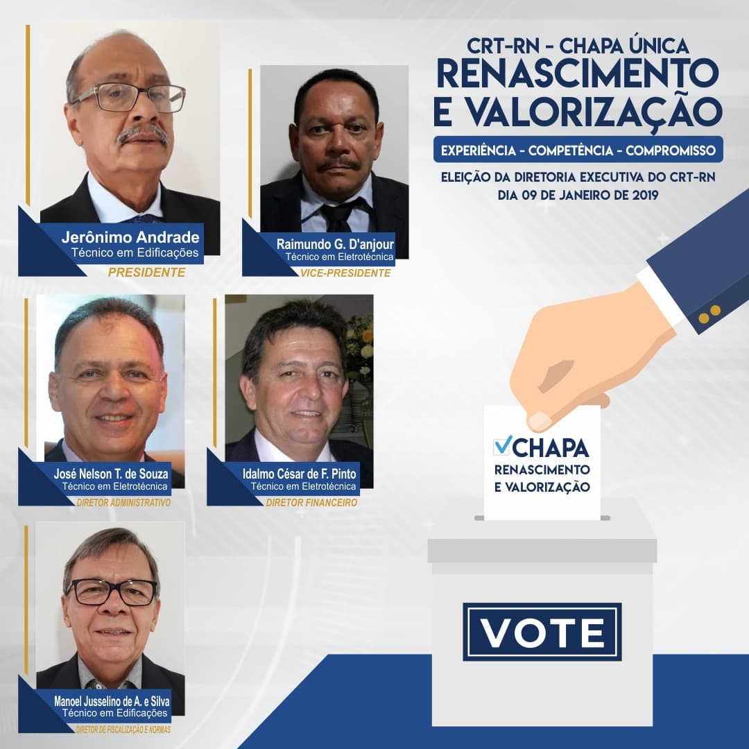 A eleição para o Conselho Regional dos Técnicos Industriais do Rio Grande do Norte (CRT-RN) já está marcada. O primeiro pleito do órgão no Estado, que definirá os membros da Diretoria Executiva para o triênio 2019/2022, acontece no dia 9 de janeiro de 2019. Cerca de 3.600 técnicos e técnicas industriais estão aptos a votar.