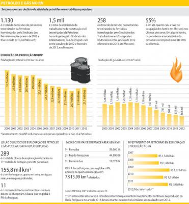 A desaceleração da atividade petrolífera no Rio Grande do Norte tem provocado a demissão de centenas de trabalhadores e afetado a economia do estado. Só o Sindicato dos Petroleiros homologou 1.130 demissões de terceirizados da Petrobras entre janeiro de 2012 e fevereiro de 2013. O Sindicato dos Trabalhadores da Construção Civil homologou 1,5 mil demissões de pedreiros, carpinteiros, serventes, soldadores que prestavam serviço para a estatal, entre outubro de 2012 e fevereiro deste ano.