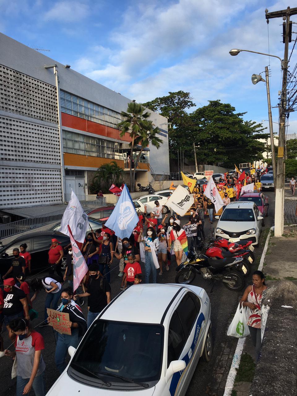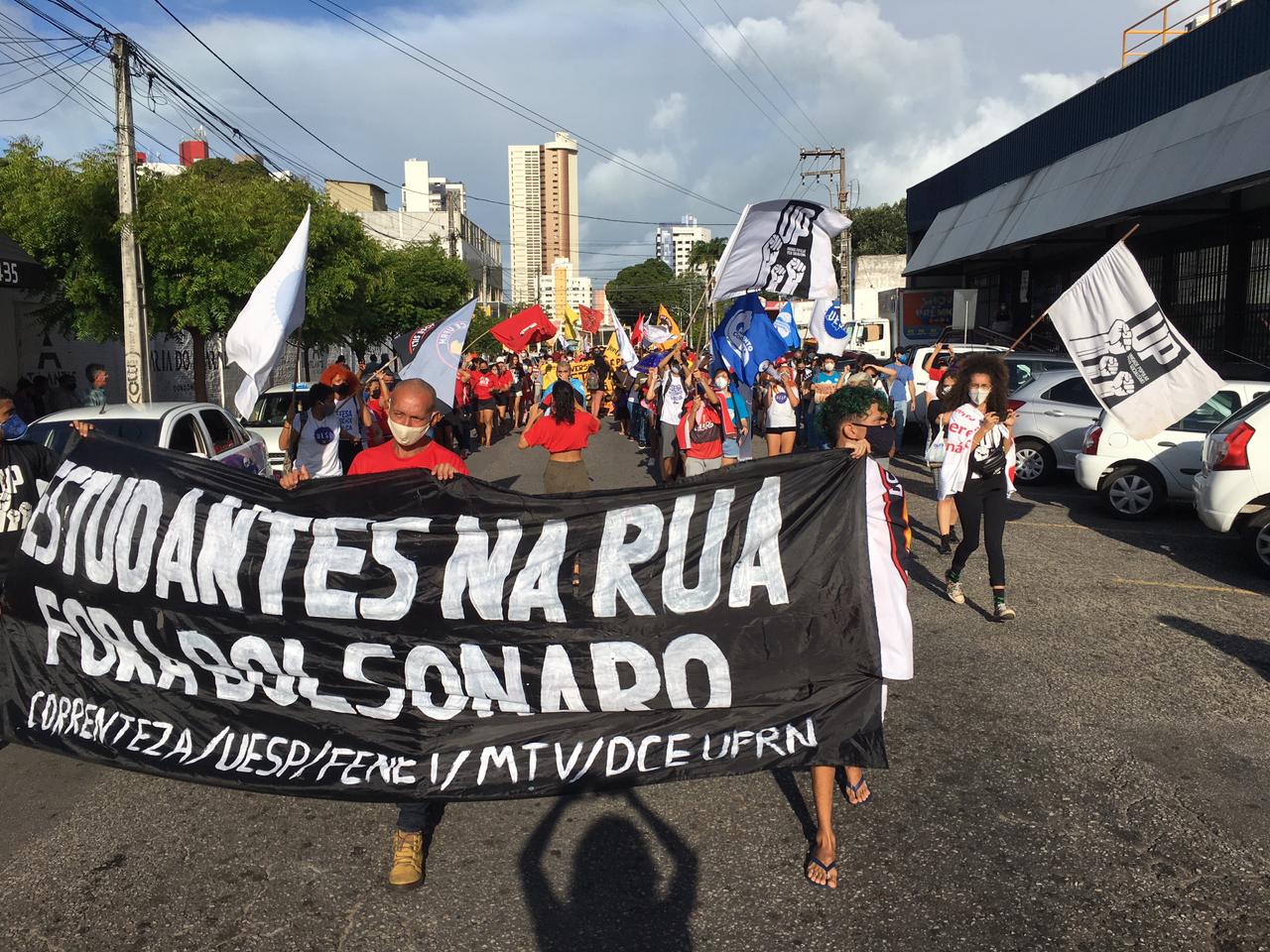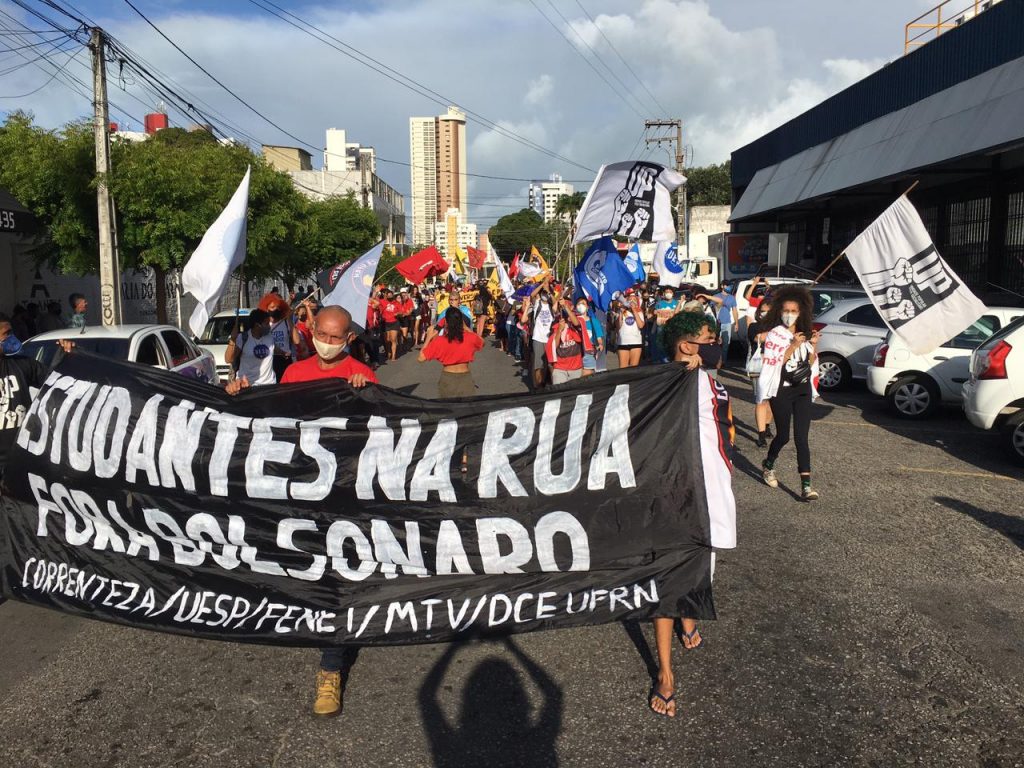 “Em meio a tantos retrocessos, é compromisso político do DCE/UFRN firmar hoje que não vamos arredar o pé da luta até que esse governo genocida e seu aliados caiam pelas mãos do povo”, afirma a coordenação do DCE da UFRN presente na ação.