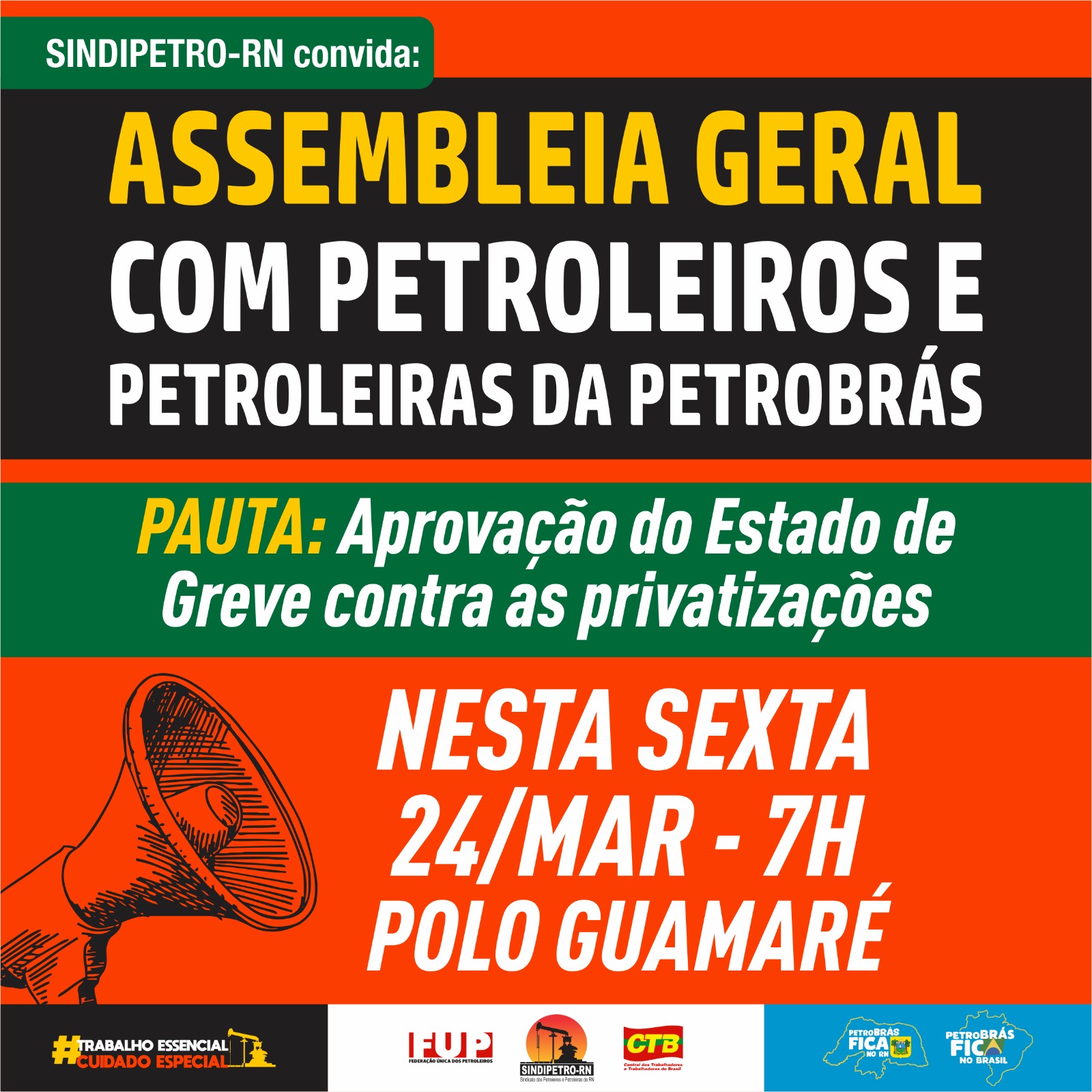 No Rio Grande do Norte, o SINDIPETRO-RN fará uma assembleia geral com a categoria petroleira, às 7h, no Polo de Guamaré, indicando a aprovação do “estado de greve” contra os projetos de privatização em curso.