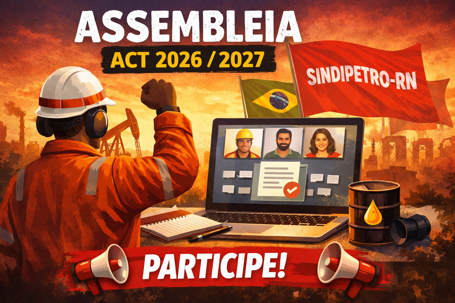 O Sindicato dos Petroleiros e Petroleiras do Estado do Rio Grande do Norte (SINDIPETRO-RN) convoca os trabalhadores e trabalhadoras da NJB Engenharia Ltda para participarem de Assembleia Geral Extraordinária que irá discutir o Acordo Coletivo de Trabalho (ACT) 2026/2027. Veja o edital: EDITAL NJB ACT 2026-2027