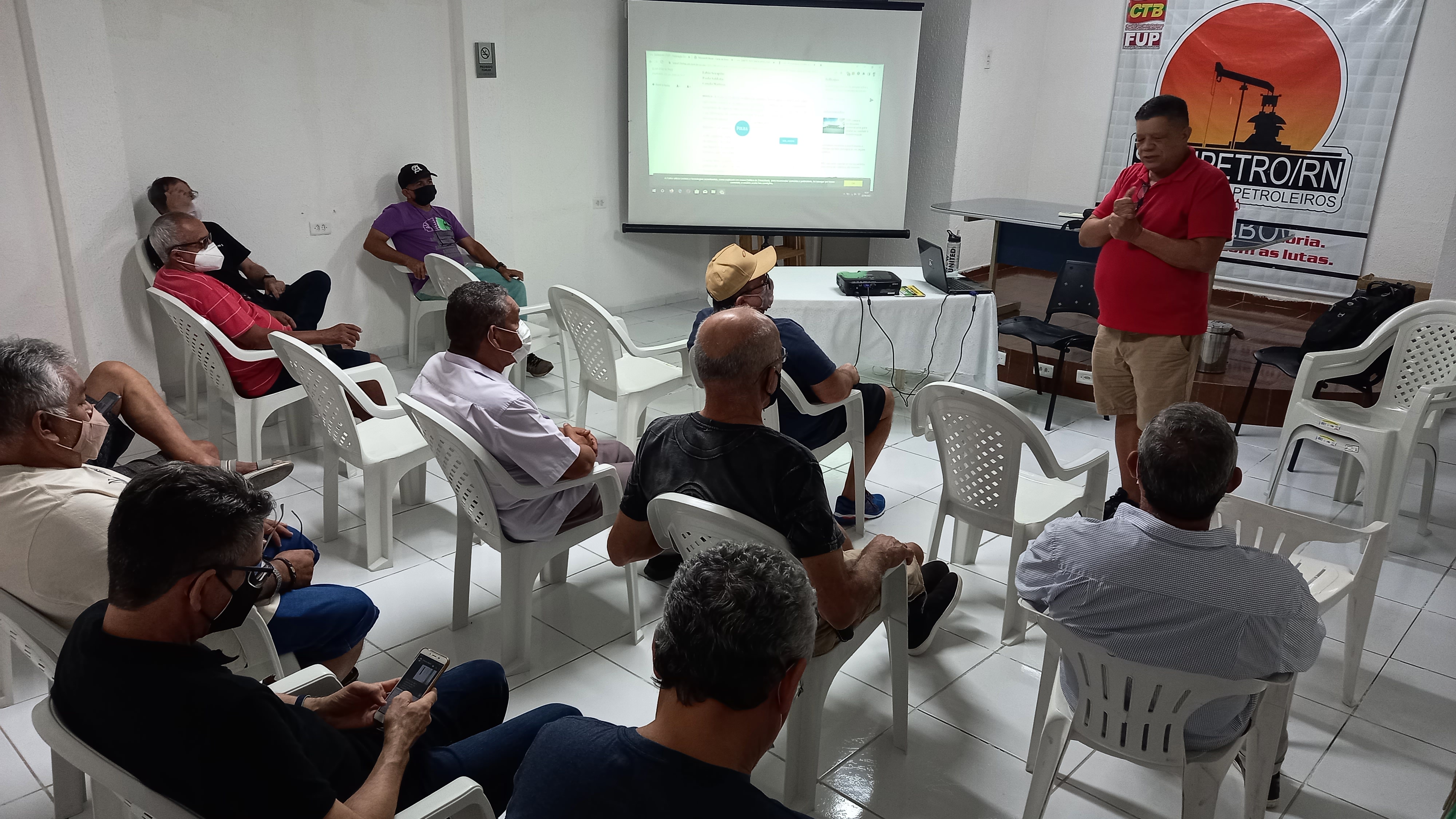 Nesta quarta(21) o diretor da pasta de aposentados e pensionistas do sindicato, José Araújo(Dedé) reuniu um grupo de aposentados na subsede do SINDIPETRO-RN em Mossoró. Na oportunidade o dirigente apresentou a vergonhosa proposta de ACT proposta pela Petrobrás em reunião com a Federação Única dos Petroleiros na última segunda-feira(20).