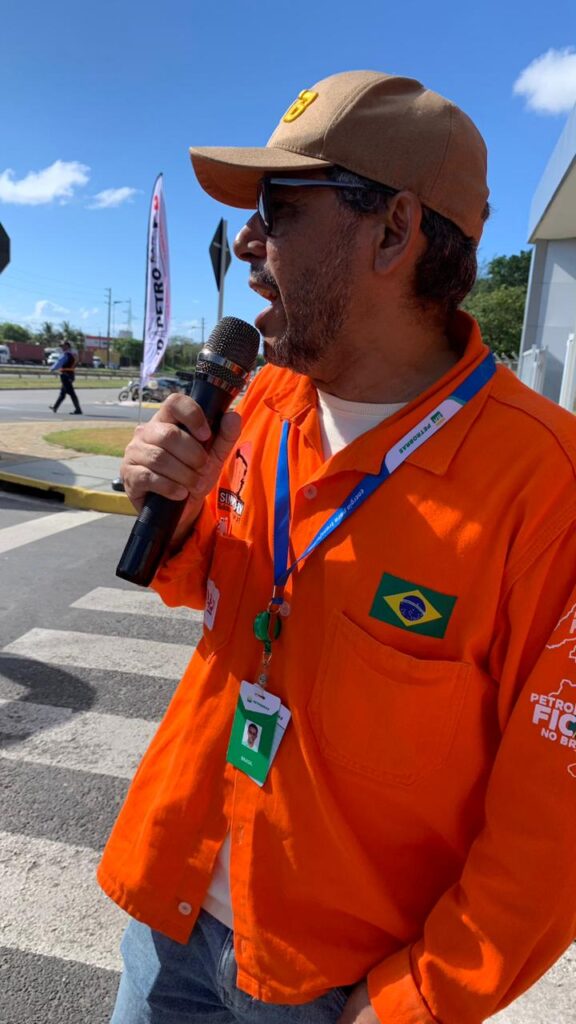 “Estamos aqui na Refinaria Abreu e Lima, em Recife, num dia decisivo para salvarmos a Petrobrás dos ataques do capital financeiro. A gestão da empresa está tirando o dinheiro dos trabalhadores — próprios e terceirizados — para enviar aos acionistas estrangeiros dos Estados Unidos, Europa, Japão e Coreia do Sul. Bilionários que continuam enriquecendo às custas do nosso suor. Essa luta é para mostrar à gestão da Petrobrás que a riqueza gerada pela empresa deve permanecer no Brasil e servir ao povo brasileiro”, destacou Marcos Brasil, coordenador-geral do Sindipetro-RN.