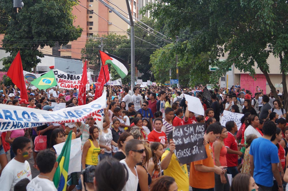 Embalados pelo hino nacional e por palavras de ordem, os presentes reivindicavam um país justo e democrático com um serviço público de qualidade, mesmo que, para isso, se abra mão da copa do mundo de futebol, em 2014. Em primeiro lugar vem a nação, isso é consenso.