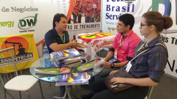 No stand, são distribuídos revistas, folders e adesivos que demonstram a realidade dura enfrentada pelas empresas. O diretor Pedro Lúcio mostra o cenário que os novos profissionais do setor vão se deparar quando nele ingressarem, mas explica que há soluções para reverter esse quadro no Brasil e fortalecer a produção. “A presença da PETROBRÁS nos estados produtores, a responsabilidade social que engloba toda uma cadeia de empregos geradas indiretamente com isso, são fundamentais para o desenvolvimento dessas localidades e da formação científica desses novos profissionais”, explicou Pedro.