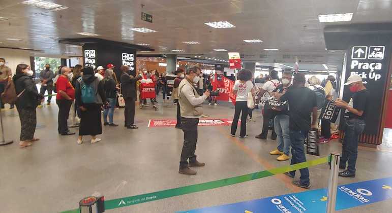 A volta dos deputados federais a Brasília, na terça-feira (14), foi marcada por protestos contra a Proposta de Emenda à Constituição 32/2020 – a nefasta PEC 32. Pela manhã, centenas de trabalhadores foram ao saguão de desembarque do Aeroporto Internacional de Brasília para dialogar com parlamentares e denunciar os riscos desse projeto – que propõe uma reforma administrativa conservadora, tira direitos dos servidores e precariza os serviços públicos.